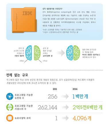 8ÀÏ(ÇöÁö½Ã°£) IBMÀº Àΰ£ µÎ³úÀÇ ´º·±(½Å°æ¼¼Æ÷)°ú ½Ã³À½º(½Å°æ¼¼Æ÷ ¿¬°á ºÎÀ§) ±¸Á¶¸¦ ¸ð¹æÇÑ £§´º·Î½Ã³Àƽ Ĩ£§(neurosynaptic chip) ¹æ½ÄÀÇ £§Æ®·ç ³ë½º£§(True North)¸¦ °³¹ßÇÏ°í °ü·Ã ¿¬±¸ ³»¿ëÀ» ¼¼°èÀûÀÎ ÇмúÁöÀÎ ¹Ì±¹ »çÀ̾𽺠¿Â¶óÀÎÆÇÀ» ÅëÇØ ¹ßÇ¥Çß´Ù.