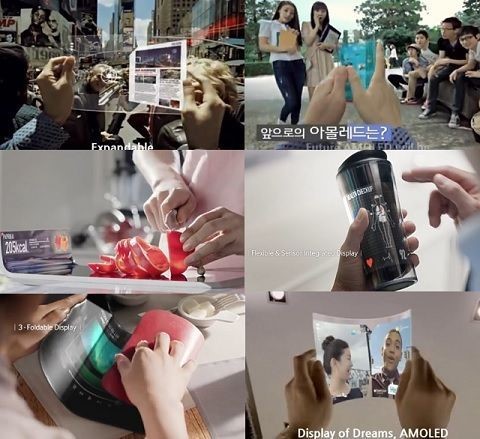 ÇâÈÄ ·Ñ·¯ºíÀ̳ª ½ºÆ®·¹ÃÄºí µð½ºÇ÷¹ÀÌ ´Ü°è±îÁö ¹ßÀüÇÒ °æ¿ì Ȱ¿ëµµ´Â ´õ¿í ¹«±Ã¹«ÁøÇØÁø´Ù. »ï¼ºµð½ºÇ÷¹À̰¡ Á¦ÀÛÇÑ ¿µ»ó ±¤°í¿¡´Â ´Éµ¿ÇüÀ¯±â¹ß±¤´ÙÀÌ¿Àµå(AMOLED)ÀÇ ¹Ì·¡ Ȱ¿ë¹æ¾ÈÀ¸·Î Ç÷º¼­ºí µð½ºÇ÷¹ÀÌÀÇ ´Ù¾çÇÑ ÁøÈ­ Á¦Ç°µéÀÌ µîÀåÇÑ´Ù.