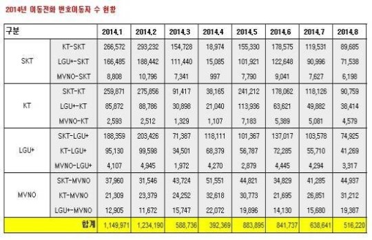 1ÀÏ Çѱ¹Åë½Å»ç¾÷ÀÚ¿¬ÇÕȸ(KTOA)¿¡ µû¸£¸é Áö³­ 8¿ù À̵¿ÀüÈ­¹øÈ£À̵¿ÀÚ¼ö´Â ÃÑ 51¸¸6220¸íÀÌ´Ù. Àü¿ù´ëºñ 19.2% °¨¼ÒÇß´Ù. ¿Ã µé¾î µÎ ¹øÂ°·Î ³·Àº ¼öÄ¡´Ù. ¹øÈ£À̵¿ Àüü ±Ô¸ð´Â ÁÙ¾úÁö¸¸ À̵¿±Ô¸ð´Â Å« Â÷À̰¡ ¾ø´Ù. ½ÃÀåÀº ¾ÈÁ¤ ¼Ó¿¡ Á¤»óÈ­ µÇ´Â ¸ð½ÀÀÌ´Ù.