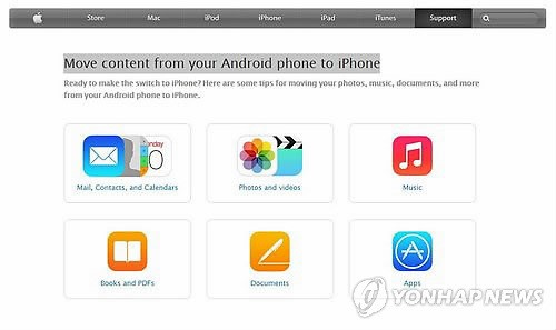 ¾ÖÇÃÀº 16ÀÏ(ÇöÁö½Ã°£) À¥»çÀÌÆ®ÀÇ »ç¿ëÀÚ Áö¿ø ¹®¼­ ¸Þ´º(support.apple.com/kb/HT6407)¿¡ £§¿©·¯ºÐÀÇ ¾Èµå·ÎÀÌµå Æù¿¡¼­ ¾ÆÀÌÆùÀ¸·Î ÄÜÅÙÃ÷¸¦ ¿Å±â¼¼¿ä£§¶ó´Â °¡À̵带 ½Ç¾ú´Ù.