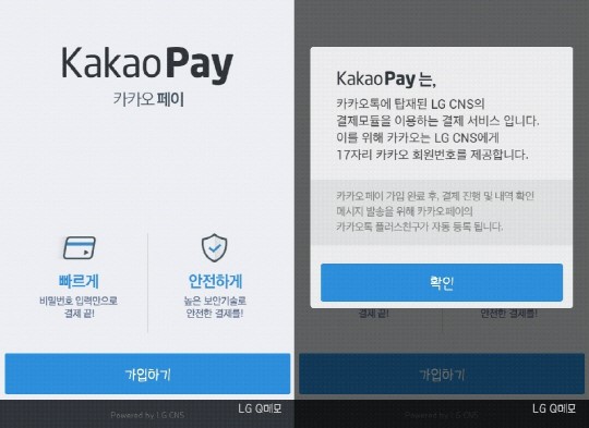 īī¿ÀÆäÀ̴ ȸ¿ø°¡ÀԽà ÃÖÃÊ ½Å¿ëÄ«µå Á¤º¸¿Í °áÁ¦ ºñ¹Ð¹øÈ£¸¦ µî·ÏÇϸé, ÀÌÈÄ °áÁ¦ ºñ¹Ð¹øÈ£ ÀԷ¸¸À¸·Îµµ »óǰ´ë±ÝÀ» °áÁ¦ÇÒ ¼ö ÀÖ´Â ±¸Á¶´Ù. ¸ÕÀú īī¿ÀÅåÀ» ½ÇÇàÇÑ ´ÙÀ½ ¼³Á¤ ¸Þ´º¿¡¼­ īī¿ÀÆäÀ̸¦ ¼±ÅÃÇϰí À̸§¡¤Áֹεî·Ï¹øÈ£ ÀÔ·Â, ÈÞ´ëÆù º»ÀÎ ÀÎÁõÀ» °ÅÃÄ¾ß ÇÑ´Ù. ±×´ÙÀ½ ´Ü°è¿¡¼­ °áÁ¦¿¡ »ç¿ëÇÒ ºñ¹Ð¹øÈ£ 6~12ÀÚ¸®¸¦ ÀÔ·ÂÇÏ°í °áÁ¦ÇÒ ½Å¿ë¡¤Ã¼Å©Ä«µåÀÇ ¹øÈ£, À¯È¿±â°£, ºñ¹Ð¹øÈ£ µîÀ» ÀÔ·ÂÇÏ¸é °¡ÀÔÀÌ ¿Ï·áµÈ´Ù.