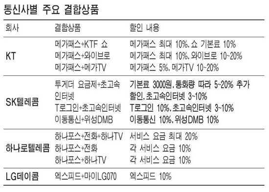 ÀÌ £§3Á¾ °áÇÕ»óǰ£§Àº °¢°¢ÀÇ ¼­ºñ½º¸¦ µû·Î ÀÌ¿ëÇÒ ¶§º¸´Ù ÃÖ´ë 20%,¿ù 8000¿ø ÀÌ»óÀ» ¾Æ³¥ ¼ö ÀÖ´Ù.