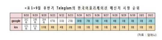 Á¤È£ÁØ ÀÇ¿øÀÌ ÀÎÅÍ³Ý ¾ÖÇø®ÄÉÀÌ¼Ç ¼øÀ§ ÇÁ·Î±×·¥ ¾Û¾Ö´Ï¿¡¼­ ¿Ü»ê ¸Þ½ÅÀúÀÎ ÅÚ·¹±×·¥ÀÇ Çѱ¹ ¸Å½ÅÀú ¾ÖÇø®ÄÉÀÌ¼Ç ¼øÀ§¸¦ È®ÀÎÇÑ °á°ú Áö³­´Þ 18ÀÏ °¢°¢ 162À§, 131À§¿¡¼­ 3À§, 1À§¿¡ µî±ØÇß´Ù. ¾ÆÀÌÆùÀÇ ¸¶ÄÏÀÎ IOSÀÇ °æ¿ì Áö³­´Þ 24ÀϺÎÅÍ ÇöÀç±îÁö ¹«·Á ÀÏÁÖÀϰ ¸¶ÄÏÀüü 1À§¸¦ À¯ÁöÁßÀÌ´Ù. Áï, ºÎµ¿ÀÇ 1À§¿´´ø ±¹»ê ¸Þ½ÅÀú £§Ä«Ä«¿ÀÅ壧À» ÀÏÁÖÀÏ ³Ñ°Ô ¾ÐµµÇϰí ÀÖ´Â °ÍÀÌ´Ù.