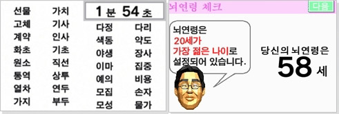 ÇÑÆí ³×Æ¼Áð »çÀÌ¿¡¼­´Â ÀϺ»ÀÇ ÇÑ Æ÷ÅÐ »çÀÌÆ®¿¡ ¿Ã·ÁÁø ³ú¿¬·É üũ °ÔÀÓÀÌ Àα⸦ ²ø°í ÀÖ´Ù. °ÔÀÓÀÇ ÁÖ¼Ò(http://games.yahoo.co.jp/games/flash/atamascam_age/)¿¡ Á¢¼ÓÇÑ ÈÄ ¹«ÀÛÀ§·Î Á¤·ÄµÅ ÀÖ´Â 1ºÎÅÍ 20±îÁöÀÇ ¼ýÀÚ¸¦ ¼ø¼­´ë·Î Ŭ¸¯ÇÏ¸é µÇ´Â °ÔÀÓÀÌ´Ù. °ÔÀÓ ¹æ¹ýÀÌ ºñ±³Àû °£´ÜÇÏ°í ¿©·¯¹ø °°Àº °ÔÀÓÀ» ¹Ýº¹ÇÏ¸é ¼ýÀÚÀÇ ¿òÁ÷ÀÓÀ» Àâ´Â ¼Óµµ°¡ »¡¶óÁ® µÎ³ú ´Ü·ÃÀ» ÇÒ ¼ö ÀÖ´Ù´Â ÆòÀ» µè°í ÀÖ´Ù.