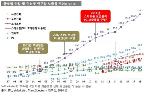 20ÀÏ KT°æ¿µ°æÁ¦¿¬±¸¼Ò°¡ ¹ß°£ÇÑ ¡®2015³â ¸ð¹ÙÀÏ Æ®·»µå Àü¸Á¡¯ º¸°í¼¿¡ µû¸£¸é Áö³ÇØ ¼¼°è ½º¸¶Æ®Æù º¸±Þ·üÀÌ PC º¸±Þ·üÀ» Ãß¿ùÇÑ °ÍÀ¸·Î ³ªÅ¸³µ´Ù.