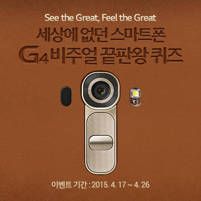 ¡´LGÀüÀÚ´Â Àü·« ½º¸¶Æ®Æù ¡®LG G4¡¯ ±¹³» Ãâ½Ã¸¦ ¸Â¾Æ 17ÀϺÎÅÍ 26ÀϱîÁö ¿Â¶óÀÎ ÄûÁî À̺¥Æ® ¡®G4 ºñÁÖ¾ó ³¡ÆÇ¿Õ ÄûÁî!¡¯¸¦ ½Ç½ÃÇÑ´Ù.¡µ
