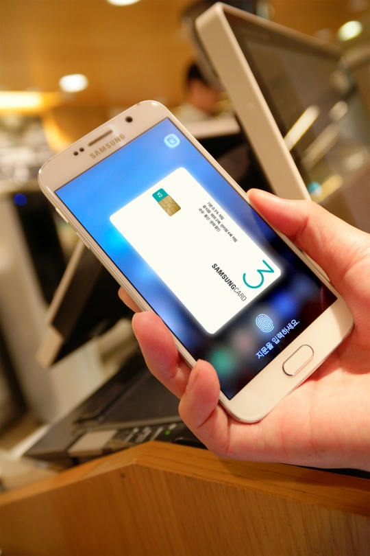 »ï¼ºÆäÀÌÀÇ »ç¿ë¹æ¹ýÀº ½±´Ù. ½º¸¶Æ®Æù È­¸éÀ» ¾Æ·¡¿¡¼­ À§·Î ¾µ¾î¿Ã¸®¸é ½Å¿ëÄ«µå°¡ È­¸é¿¡ ¶á´Ù. µî·ÏÇØ ³õÀº Ä«µå Áß °áÁ¦¿¡ »ç¿ëÇÒ Ä«µå¸¦ °í¸¥ ´ÙÀ½ Áö¹®ÀÎ½Ä ¼¾¼­¿¡ ¼Õ°¡¶ôÀ» °®´ë ´ë º»ÀÎÀÎÁõÀ» ÇÑ´Ù. ÀÌÈÄ ½º¸¶Æ®ÆùÀ» ¸¶±×³×ƽ Ä«µå¸®´õ³ª ±Ù°Å¸®Åë½Å¸Á(NFC) ´Ü¸»±â ±Ùó¿¡ °®´Ù ´ë¸é °áÁ¦°¡ ³¡³­´Ù. »ï¼ºÆäÀÌ ¾ÖÇø®ÄÉÀ̼Ç(¾Û)À» ÀÛµ¿½ÃŲ µÚ °¶·°½ÃS6¸¦ ´Ü¸»±â¿¡ °®´Ù ´ë°í ¿µ¼öÁõÀÌ ³ª¿À±â±îÁö´Â 5ÃÊ ³²ÁþÀÇ ½Ã°£À̸é ÃæºÐÇß´Ù.
