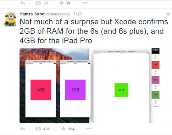 13ÀÏ(ÇöÁö½Ã°£) ¸Æ·ç¸Ó½º´Â ¾ÖÇà °³¹ßÅøÀÎ XÄڵ忡 ¾ÆÀÌÆù6S, ¾ÆÀÌÆù6SÇ÷¯½º¿¡ 2GB·¥À» ÀåÂøÇÑ ³»¿ëÀÌ Ãß°¡µÆ´Ù°í iOS °³¹ßÀÚ ÇÔÀÚ ¼öµåÀÇ Æ®À§Å͸¦ ÀοëÇØ º¸µµÇß´Ù. °³¹ßÅø¿¡´Â ¾ÆÀÌÆÐµå ÇÁ·Î¿¡ 4GB·¥ÀÌ ÀåÂøµÆ´Ù´Â Áõ°Åµµ Æ÷ÂøµÆ´Ù.