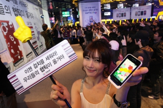 »ï¼ºÀüÀÚ´Â £§²É³²Æù£§À¸·Î Àß ¾Ë·ÁÁø £§ÇÝÆ½POP(¸ðµ¨¸í: SCH-W750)£§ Ãâ½Ã¸¦ ±â³äÇØ Áö³­ 14ÀÏ, ¼­¿ï »ï¼ºµ¿¿¡ À§Ä¡ÇÑ ÄÚ¿¢½º¸ô¿¡¼­ £§°ËÁö¼Û °Ô¸±¶ó ÆÛÆ÷¸Õ½º£§¿Í £§HAPTIC õÁöÀÎ ¹®ÀÚ¹èÆ²£§ µî °ËÁöÁ· À̺¥Æ®¸¦ ÆîÃÆ´Ù.