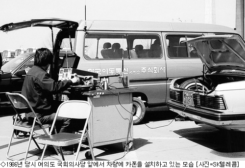 84³â 5¿ù ¾Æ³¯·Î±×(AMPS) ¹æ½ÄÀÇ Â÷·®¿ë À̵¿ÀüÈ­(Àϸí Ä«Æù, Carphone) »ó¿ëÈ­¸¦ ½ÃÀÛÇÑ Ã¹ ÇØ 2õ658¸íÀÌ »ç¿ëÇß´ø À̵¿ÀüÈ­´Â 88³â ÈÞ´ëÆùÀÌ º¸ÆíÈ­µÇ±â ½ÃÀÛÇϸ鼭 96³â¿¡ 100¸¸ ¸í, 98³â 1õ ¸¸ ¸íÀ» ³Ñ¾î¼­°Ô µÆ´Ù. 2009³â 2¿ù¸» ÇöÀç 4õ598¸¸8õ614¸íÀ¸·Î Àα¸ ´ëºñ ¾à 95%°¡ »ç¿ëÇÏ´Â »ýȰÀÇ ÇʼöǰÀ¸·Î ÀÚ¸®¸Å±èÇß´Ù.