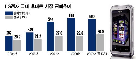 LGÀüÀÚ°¡ ±¹³» ÈÞ´ëÆù ½ÃÀåÀ» Àý¹ÝÀ̳ª Â÷ÁöÇϰí ÀÖ´Â »ï¼ºÀüÀÚ¿¡°Ô µµÀüÀåÀ» ³»¹Ð¾ú´Ù. Áö³­ÇØ Àü¼¼°è ÈÞ´ëÆù ½ÃÀå¿¡¼­ £§Åé3£§ ¹Ý¿­¿¡ ¿À¸£¸ç »ó½Â¼¼¸¦ Ÿ°í ÀÖ´Â LGÀüÀÚ´Â ³»Ä£±è¿¡ ±¹³» ½ÃÀå¿¡¼­µµ »ï¼ºÀüÀÚ¸¦ ¹Ð¾î³»°í £§1À§£§¸¦ Â÷ÁöÇϰڴٴ ¾ß½ÉÀÌ´Ù.
