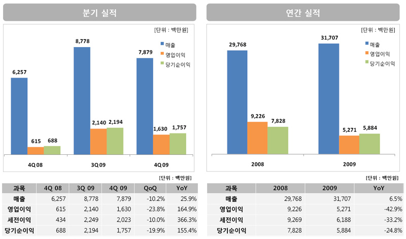 2009³â ¸ÅÃâ 317¾ï ¿ø, ¿µ¾÷ÀÌÀÍ 53¾ï ¿ø, ´ç±â¼øÀÌÀÍ 59¾ï ¿ø ´Þ¼º