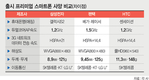 ¹Ý¸é µð½ºÇ÷¹ÀÌ ÇØ»óµµ´Â £§¼¾¼¼À̼ǣ§ÀÌ Ç® °íÈÁú(Full HD) 960¡¿540À¸·Î °¡Àå ³ô´Ù. À¥ ºê¶ó¿ì¡ ¼Óµµ´Â 1.5±â°¡Ç츣Ã÷(§×)¸¦ ÀåÂøÇÑ £§º£°¡ ·¹À̼£§°¡ °¡Àå ºü¸£´Ù. ±Ù°Å¸® ¹«¼±Åë½Å(NFC)Àº £§°¶·°½ÃS2£§¿Í £§º£°¡ ·¹À̼£§¸¸ ÀåÂøÇß´Ù. £§¼¾¼¼À̼ǣ§Àº Áö»óÆÄ µðÁöÅÐ¸ÖÆ¼¹Ìµð¾î¹æ¼Û(DMB) ±â´Éµµ ºüÁ® ÀÖ´Ù.
