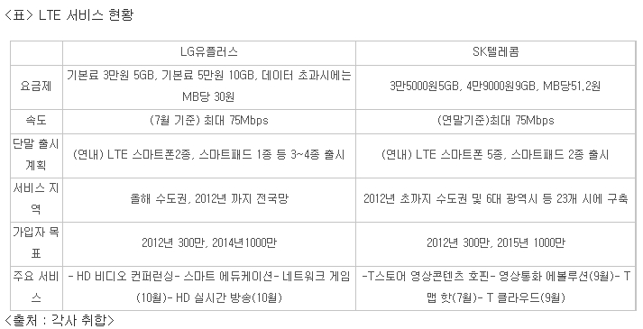 7¿ù 1ÀÏ 0½Ã¸¦ ½ÃÀÛÀ¸·Î SKÅÚ·¹ÄÞ°ú LGÀ¯Ç÷¯½º°¡ LTE ¼­ºñ½º¸¦ ½ÃÀÛÇϸ鼭 ±¹³»¿¡¼­µµ ¡®4G ½Ã´ë¡¯°¡ °³¸·Çß´Ù. LTE¼­ºñ½º´Â ÆøÁõÇÏ´Â µ¥ÀÌÅÍ Æ®·¡ÇÈ ¹®Á¦¸¦ ÇØ¼ÒÇÏ°í »õ·Î¿î ¸ÖƼ¹Ìµð¾î ¼­ºñ½º¸¦ ¿©´Â °è±â°¡ µÉ °ÍÀ¸·Î º¸ÀδÙ. µÎ »ç¾÷ÀÚ´Â ¼­ºñ½º ¿ø³âÀÎ ¿ÃÇØ 30¸¸ °¡ÀÔÀÚ¸¦ ½ÃÀÛÀ¸·Î ´Ê¾îµµ 2015³â¿¡´Â 1000¸¸ °¡ÀÔÀÚ¸¦ µ¹ÆÄÇϰڴٴ °­ÇÑ ÀÇÁö¸¦ ³»ºñÃÆ´Ù. ÀÌ¿¡ µû¶ó °ú¿¬ ±âÁ¸ ¿ÍÀ̺ê·Î¿Í Â÷º°È­Çϸ鼭 ¼ÒºñÀÚ¸¦ ²ø¾îµéÀÏ LTE¸¸ÀÇ °íÀ¯ ¼­ºñ½º¸¦ ¾î¶»°Ô °³¹ßÇÒÁö¿¡ °ü½ÉÀÌ ½ò¸®°í ÀÖ´Ù.