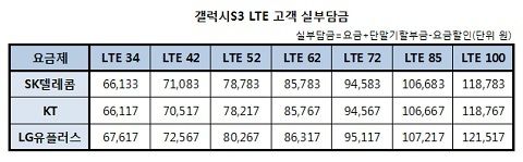 Á¦¸ñ ¡æ °¶S3 LTE 3»ç ¿ä±Ý ºñ±³...°¡Àå ½Ñ °÷Àº?