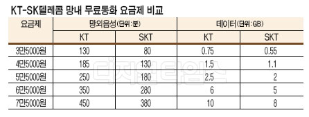 ƯÈ÷ KT´Â Àü ¿ä±ÝÁ¦¿¡¼­ SKÅÚ·¹ÄÞ¿¡ ºñÇØ ¸Á¿Ü ÅëÈ­·®À» 50¡­80ºÐ °¡·® Ãß°¡·Î Á¦°øÇÑ´Ù. À̵¿ÀüÈ­ ½ÃÀåÁ¡À¯À² 50%·Î ¾ÐµµÀûÀÎ 1À§¸¦ ±â·ÏÇϰí ÀÖ´Â SKÅÚ·¹ÄÞ¿¡ ºñÇØ ¸Á³» ¹«·áÅëÈ­¿¡¼­ ¿­¼¼ÀÎ Á¡À» ¸¸È¸Çϱâ À§ÇÑ Á¶Ä¡´Ù.