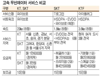Â÷¼¼´ë ³×Æ®¿öÅ©¸¦ ÀÌ¿ëÇÑ °í¼Ó ¹«¼±µ¥ÀÌÅÍ ¼­ºñ½º °æÀïÀÌ ½ÃÀ۵ƴÙ. KT¿Í SKÅÚ·¹ÄÞÀÇ ÈÞ´ëÀÎÅÍ³Ý ¼­ºñ½º `¿ÍÀ̺ê·Î£§¸¦ ºñ·ÔÇØ, SKÅÚ·¹ÄÞÀÇ `T·Î±×ÀΣ§(T Login), KTFÀÇ `¾ÆÀÌÇ÷¯±×£§(iPlug)°¡ ¹Ù·Î °æÀï ·¹À̽º¿¡ ³ª¼± ÁÖÀÚµéÀÌ´Ù.