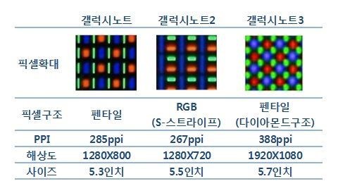 »ï¼ºÀüÀÚ°¡ ÃÖ±Ù °ø°³ÇÑ Â÷¼¼´ë Àü·« ½º¸¶Æ®Æù ¡®°¶·°½Ã³ëÆ®3¡¯¿¡´Â ÀüÀÛ ´ëºñ ÇØ»óµµ¿Í Àü·Â¼Ò¸ð¸¦ Å©°Ô °³¼±ÇÑ Ç®HD(1920¡¿1080) ÇØ»óµµÀÇ ´Éµ¿ÇüÀ¯±â¹ß±¤´ÙÀÌ¿Àµå(AMOLED) µð½ºÇ÷¹À̰¡ žÀçµÆ´Ù. »ï¼ºÀº µð½ºÇ÷¹ÀÌ Çȼ¿±¸Á¶¸¦ ´ÙÀ̾Ƹóµå ÇüÅ·Π¹Ù²Ù°í ÇØ»óµµ¸¦ ²ø¾î¿Ã¸®¸é¼­ ±âÁ¸ ÆæÅ¸ÀÏ ¹æ½ÄÀÇ ´ÜÁ¡À» »ó¼âÇß´Ù.
