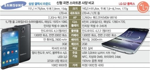 È­Áú ¸é¿¡ À־ »ï¼º Á¦Ç°ÀÌ ¾Õ¼±´Ù. ¾Õ¼­ Ãâ½ÃµÈ °¶·°½Ã ¶ó¿îµå´Â 5.7ÀÎÄ¡(144.3§®) Ç®HD(1920x1080) ½´ÆÛ AMOLED µð½ºÇ÷¹À̸¦ äÅÃÇß´Ù. ÀÎÄ¡´ç Çȼ¿¼ö(ppi)°¡ 386°³·Î ÇØ»óµµµµ È­Áúµµ ¼öÁرÞÀÌ´Ù. ÇÏÁö¸¸ LGÀüÀÚÀÇ GÇ÷º½º´Â 6ÀÎÄ¡ °íÈ­Áú(HD¡¤°¡·Î 1280x¼¼·Î 720) È­¸é¿¡ °î¸é ÇÃ¶ó½ºÆ½ OLED µð½ºÇ÷¹À̸¦ äÅÃÇß´Ù. È­Áú°ú ÇØ»óµµ¸¦ °áÁ¤ÇÏ´Â ÀÎÄ¡´ç Çȼ¿¼ö(ppi)´Â 245ppi ¼öÁØÀÌ´Ù. °æÀï»ç ¸ðµ¨º¸´Ù È­ÁúÀÌ ¶³¾îÁö´Â Á¡¿¡ ´ëÇØ LG °ü°èÀÚ´Â ¡°µð½ºÇ÷¹ÀÌ µîÀ» °î¸éÀ¸·Î ¸¸µé·Á¸é ¼öÀ²(ÅõÀÔ·® ´ëºñ ¿Ï¼ºÇ° ºñÀ²)ÀÌ ¶³¾îÁö°í ½Ã°£µµ ¸¹ÀÌ °É·Á ºñ¿ëÀÌ 20~30%°¡·® ´õ ¹ß»ýÇÑ´Ù¡±¸é¼­ ¡°°¡°Ý°æÀï·Â°ú ¿øÈ°ÇÑ ½ÃÀå °ø±Þ µîÀ» °í·ÁÇØ HD±ÞÀ» ¼±ÅÃÇÑ °ÍÀÏ »Ó ±â¼ú·Â Â÷ÀÌ´Â ¾Æ´Ï´Ù¡±¶ó°í ÁÖÀåÇß´Ù.